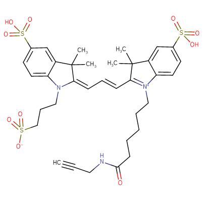 | SMILES: | CC1(C)\C(=C/C=C/C2=[N+](CCCCCC(=O)NCC#C)C3=CC=C(C=C3C2(C)C)S(O)(=O)=O)N(CCCS([O-])(=O)=O)C2=CC=C(C=C12)S(O)(=O)=O |