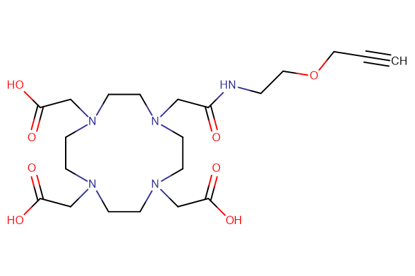 DOTA bifucational chelator containing an alkyne group, a PEG linker, and the macrocyclic chelator DOTA ( 1,4,7,10-tetraazacyclododecane-1,4,7,10-tetraacetic acid). It can be used in many different diagnostic and therapeutic applications, such as MRI contrast agents, PET and SPECT imaging agents, and radiotherapeutic agents.