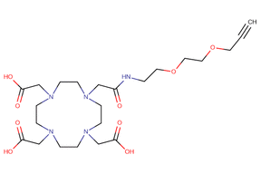 DOTA bifucational chelator containing an alkyne group, a PEG linker, and the macrocyclic chelator DOTA ( 1,4,7,10-tetraazacyclododecane-1,4,7,10-tetraacetic acid). It can be used in many different diagnostic and therapeutic applications, such as  MRI contrast agents, PET and SPECT imaging agents, and radiotherapeutic agents.
