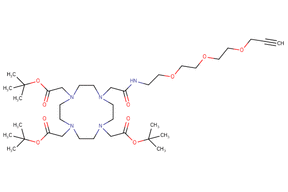 DOTA bifucational chelator containing an alkyne group, a PEG linker, and the macrocyclic chelator DOTA ( 1,4,7,10-tetraazacyclododecane-1,4,7,10-tetraacetic acid). It can be used in many different diagnostic and therapeutic applications, such as MRI contrast agents, PET and SPECT imaging agents, and radiotherapeutic agents.