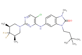 SMILES C[C@H]1CN(C[C@@H](C)C1(F)F)C1=NC(NC2=CC3=C(C=C2)N(C)C(=O)N3CCC(C)(C)C)=C(Cl)C=N1
