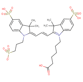 | SMILES: | CC1(C)\C(=C/C=C/C2=[N+](CCCCCC(O)=O)C3=CC=C(C=C3C2(C)C)S(O)(=O)=O)N(CCCS([O-])(=O)=O)C2=CC=C(C=C12)S(O)(=O)=O |
