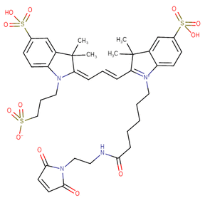 | SMILES: | CC1(C)\C(=C/C=C/C2=[N+](CCCCCC(=O)NCCN3C(=O)C=CC3=O)C3=CC=C(C=C3C2(C)C)S(O)(=O)=O)N(CCCS([O-])(=O)=O)C2=CC=C(C=C12)S(O)(=O)=O |
