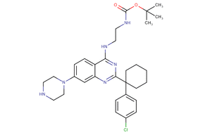 | SMILES | CC(C)(C)OC(=O)NCCNC1=NC(=NC2=CC(=CC=C12)N1CCNCC1)C1(CCCCC1)C1=CC=C(Cl)C=C1 |