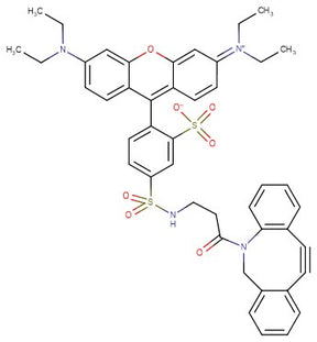 DBCO is widely used in copper-free click chemistry. The fluorescence emission spectrum of Lissamine rhodamine B lies between those of tetramethylrhodamines and X-rhodamines, and it can be well excited by 568 nm line of the Ar-Kr mixed gas laser that is used in many confocal laser-scanning microscopes. Reference: