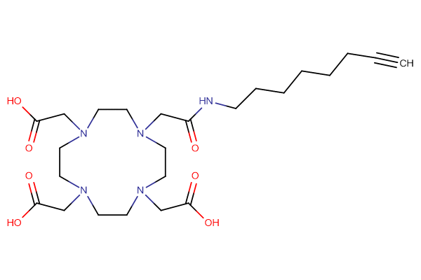 DOTA bifucational chelator containing an alkyne group, an alkyl linker, and the macrocyclic chelator DOTA ( 1,4,7,10-tetraazacyclododecane-1,4,7,10-tetraacetic acid). It can be used in many different diagnostic and therapeutic applications, such as MRI contrast agents, PET and SPECT imaging agents, and radiotherapeutic agents.