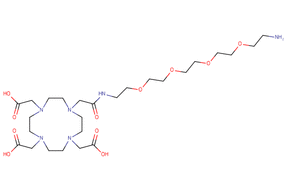 DOTA bifucational chelator containing an amine group, a PEG linker, and the macrocyclic chelator DOTA ( 1,4,7,10-tetraazacyclododecane-1,4,7,10-tetraacetic acid). It can be used in many different diagnostic and therapeutic applications, such as MRI contrast agents, PET and SPECT imaging agents, and radiotherapeutic agents.