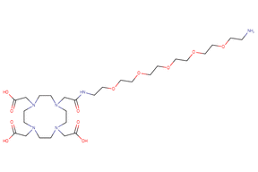DOTA bifucational chelator containing an amine group, a PEG linker, and the macrocyclic chelator DOTA ( 1,4,7,10-tetraazacyclododecane-1,4,7,10-tetraacetic acid). It can be used in many different diagnostic and therapeutic applications, such as MRI contrast agents, PET and SPECT imaging agents, and radiotherapeutic agents.