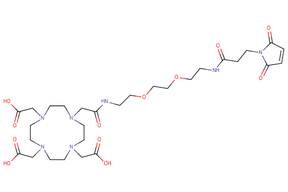 DOTA bifucational chelator containing a thiol-reactive maleimide group, a PEG linker, and the macrocyclic chelator DOTA ( 1,4,7,10-tetraazacyclododecane-1,4,7,10-tetraacetic acid). It can be used in many different diagnostic and therapeutic applications, such as  MRI contrast agents, PET and SPECT imaging agents, and radiotherapeutic agents.