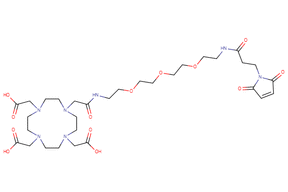 DOTA bifucational chelator containing a thiol-reactive maleimide group, a PEG linker, and the macrocyclic chelator DOTA ( 1,4,7,10-tetraazacyclododecane-1,4,7,10-tetraacetic acid). It can be used in many different diagnostic and therapeutic applications, such as MRI contrast agents, PET and SPECT imaging agents, and radiotherapeutic agents.