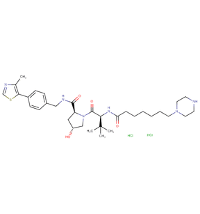 | SMILES | Cl.Cl.CC1=C(SC=N1)C1=CC=C(CNC(=O)[C@@H]2C[C@@H](O)CN2C(=O)[C@@H](NC(=O)CCCCCCN2CCNCC2)C(C)(C)C)C=C1 |
