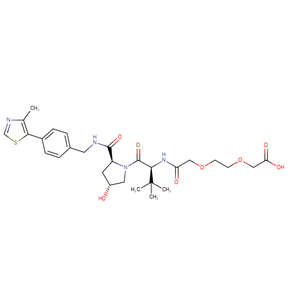 SMILES CC1=C(SC=N1)C1=CC=C(CNC(=O)[C@@H]2C[C@@H](O)CN2C(=O)[C@@H](NC(=O)COCCOCC(O)=O)C(C)(C)C)C=C1