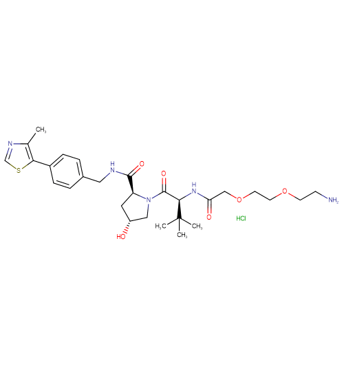 | SMILES | Cl.Cl.CC1=C(SC=N1)C1=CC=C(CNC(=O)[C@@H]2C[C@@H](O)CN2C(=O)[C@@H](NC(=O)COCCOCCN)C(C)(C)C)C=C1 |
